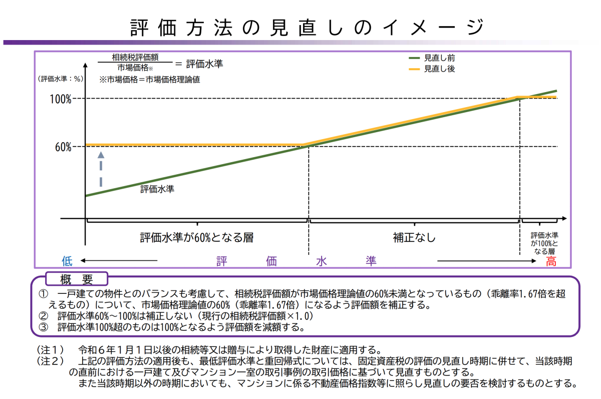 このような「節税効果の差」にメスを入れるため、国税庁は次のような是正案を公表しました。この是正案をもとに改正案が作られ、パブリックコメントなどにかけられた後、2024年1月1日以降に相続や贈与によって取得した財産に適用される予定です。