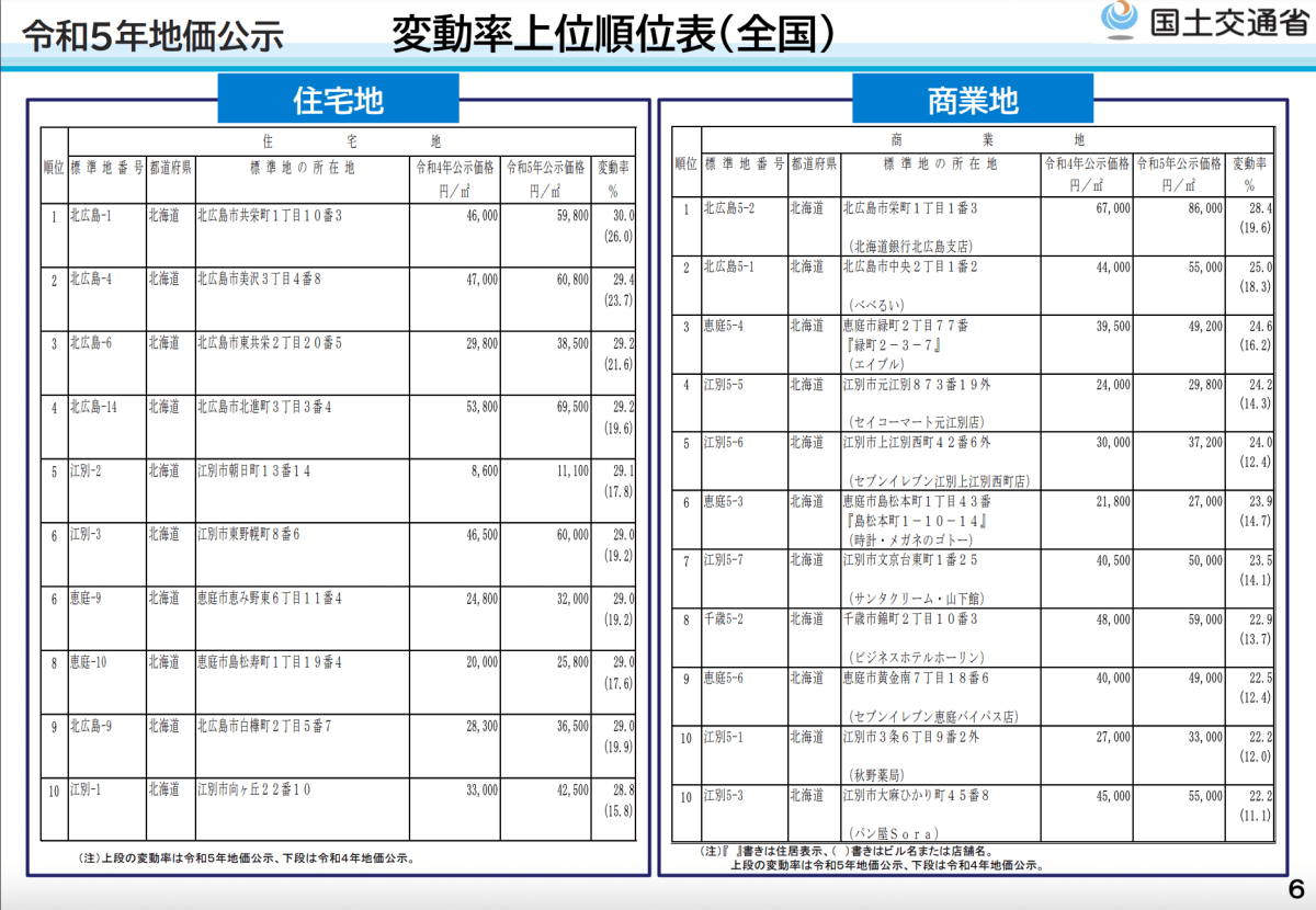 3月22日、国土交通省が2023年公示地価を発表しました。