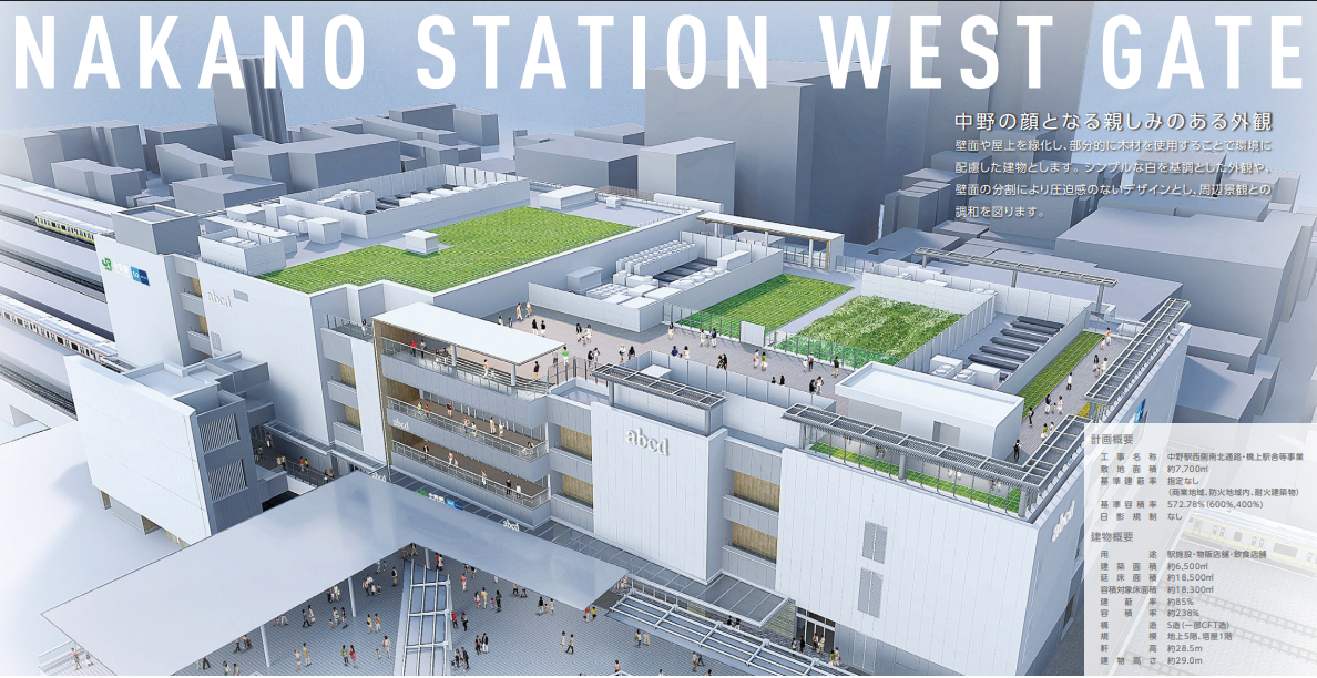 - 駅ビル「アトレ中野」(地上5階・延床約18,500㎡)