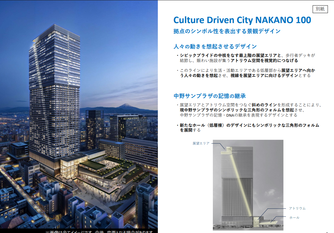 - 当初は「NAKANOサンプラザシティ(仮称)」という超高層複合ビルが計画されていました。