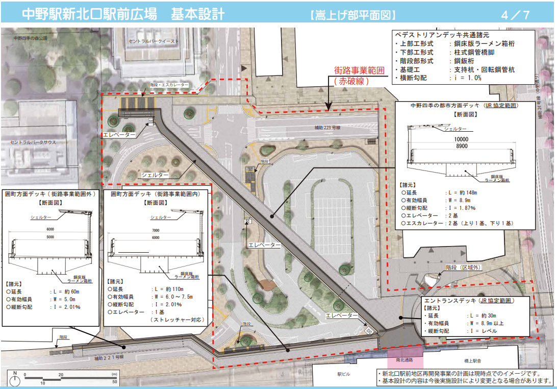 - 補助223号線の整備や、中野四季の都市・囲町地区へのデッキ接続も含まれており、駅と周辺エリアの一体感が高まる計画です。