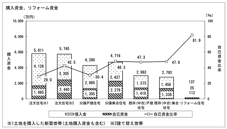 一方、国土交通省の「令和5年度 住宅市場動向調査」によれば、中古住宅の自己資金比率は47%程度と高くなっています。固定金利は、借入後に返済額が変動することがないこともあって、自己資金比率を抑える方が多いようです。