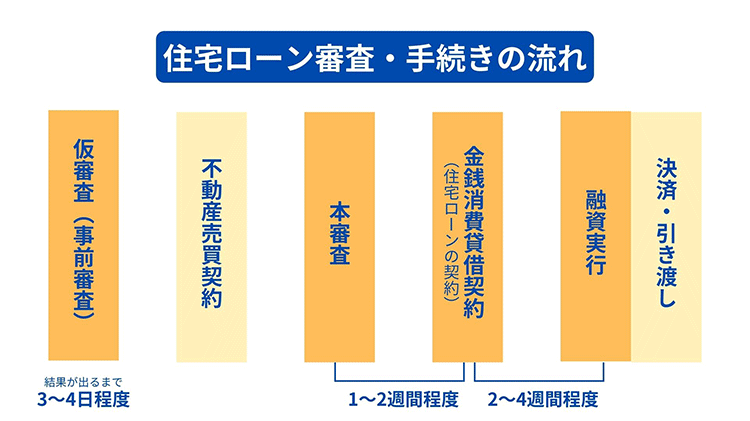 仮審査にかかる期間は、多くの場合3〜4日です。購入申し込み時点で仮審査に通過していなければならないわけではありませんが、仮審査に通過していなければ売主と交渉できないケースもあるため、早めに仮審査を受けておくと良いでしょう。